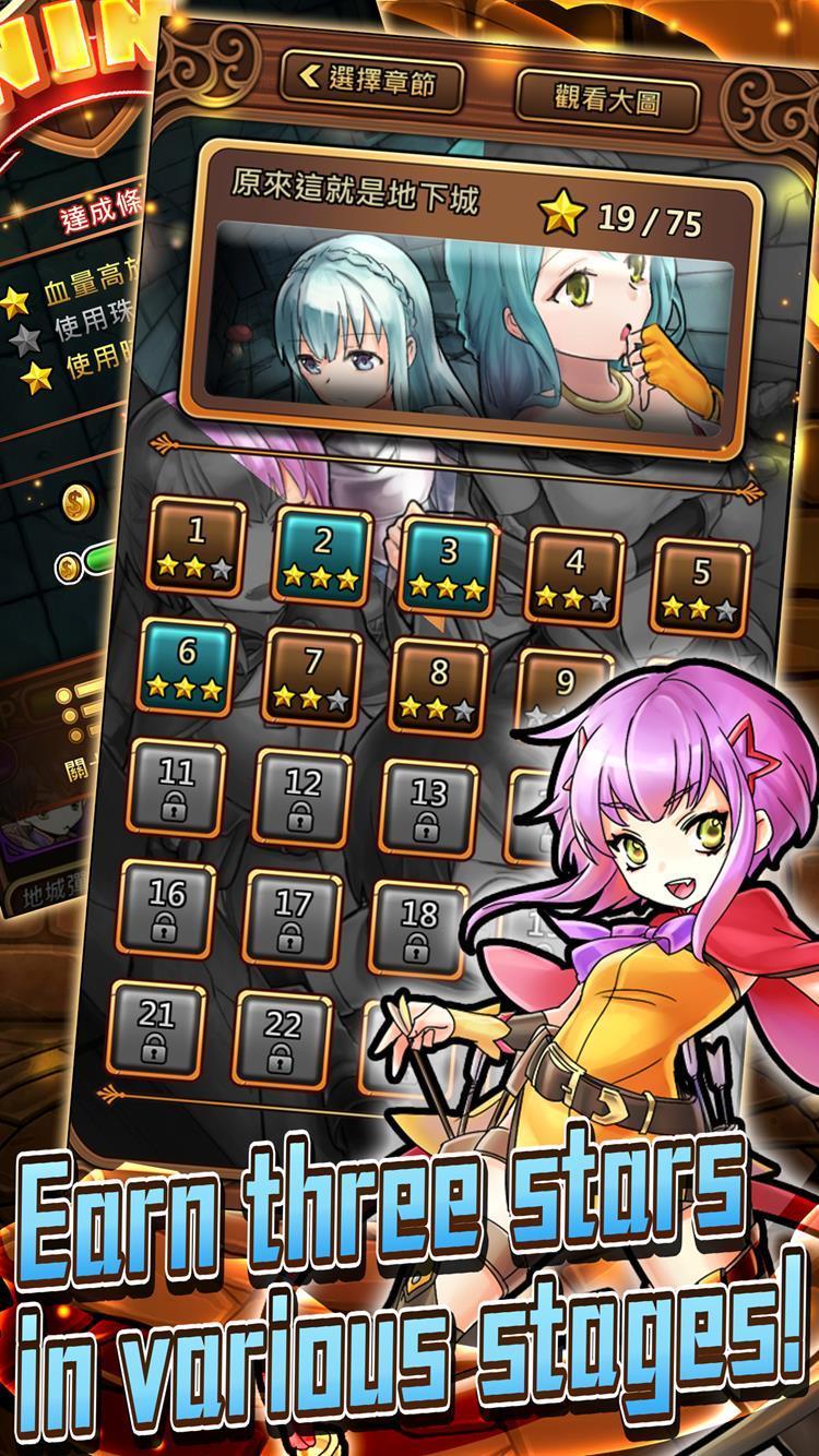 每个阶段都是地牢中的一个房间,游戏中的角色和英雄在弹球平台上转变为“弹球”。通过发射球,玩家在地牢阶段击中和反弹时会帮助这些角色击败怪物,激活隐藏的开关,并摆脱陷阱,以解决每个阶段的难题。